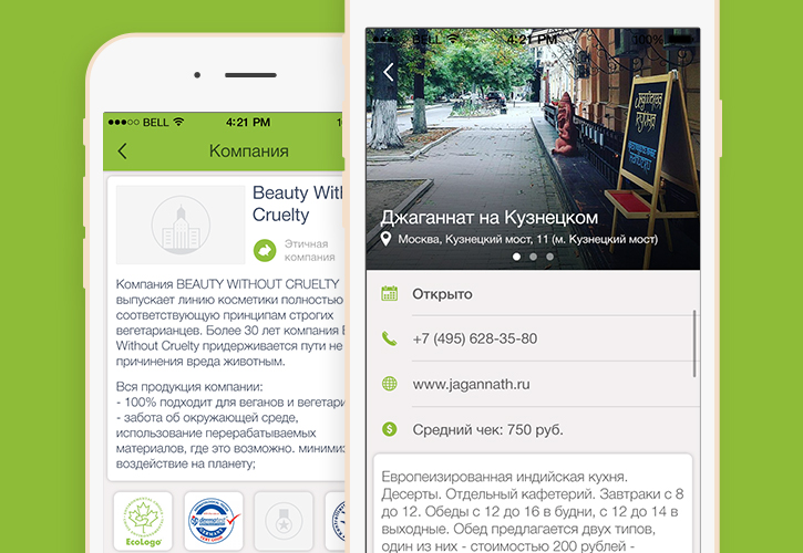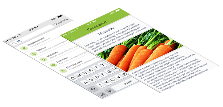 The app allows you to find information about products, companies and restaurants. All data is already loaded into the app, so the search will not take long.
