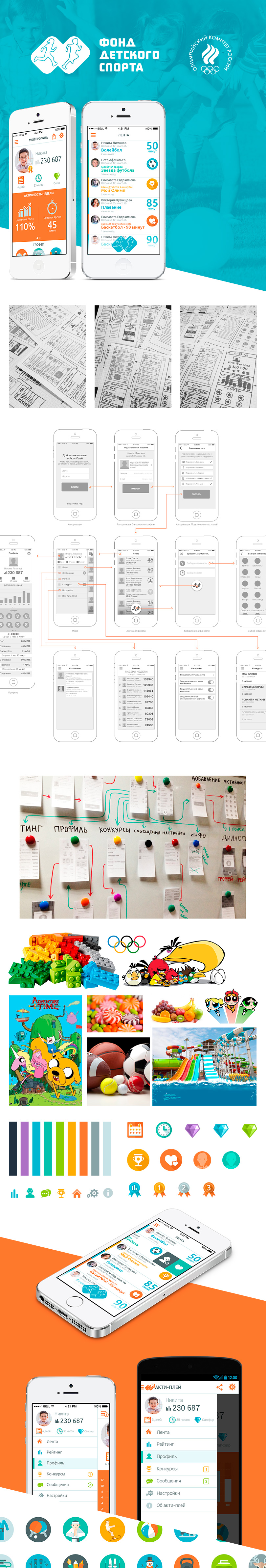 Social networks To improve the virality level, we made provisions for quick connection to social networks most popular among schoolchildren. Social networks Custom images caching implementation. The images are stored in the cache inside the app for faster repeated displays and reloaded from server only in case of modifications. Custom images caching implementation. Implementation of operations with the increased stability server Server operating manager analyzes the status of Internet connection and, in case of inconsistent connection or its absence, saves enquiries until acceptable connection is available. Implementation of operations with the increased stability server Visualization We created visualization with the playful and optimistic mood that also accentuates seriousness of children's sports expectations. Visualization Icons We featured over 130 unique icons of activities and trophies specially for the app. Icons Animations The most important interface elements are animated in order to increase app usability. Animations