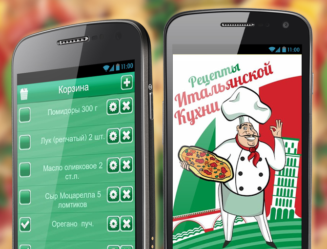 "Italian cuisine" app from "World cuisines" series contains over 200 illustrated recipes. This app also has an easy-to-use cart for making a shopping list, timers, recipes filter by available products, Favourites section.