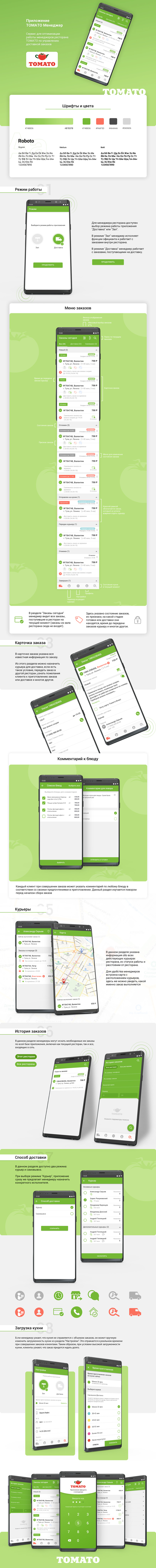Mode selection The restaurant manager can select the "Delivery" or "Lounge" application mode. In the "Lounge" mode, the manager acts as a waiter and works with orders inside the restaurant. In the "Delivery" mode, the manager works with orders coming for delivery. Mode selection Order section In the "Orders Today" section, the manager sees all the orders received by the restaurant at the current moment (orders from the restaurant hall are not included here). It shows the status of orders, their signs, at what stage of preparation or delivery they are, the time before the transfer of orders to the courier and much more. Order section Order card The order card contains all known order information. From this section, you can assign a courier for delivery, if there is such a condition, transfer the order to another restaurant, find out the customer's wishes for order preparation or delivery, and much more. Order card Delivery method There are two modes available in this section: courier and self-pickup. When choosing the "Courier" mode, the application immediately prompts the manager to appoint a specific contractor. Delivery method Dish comment Each customer, when placing an order, can indicate a comment on any dish in accordance with their preferences in cooking. This section is studied by the turn before starting to collect the order. Dish comment Couriers This section contains information about all current couriers of the restaurant, their status of work and distance from the restaurant. For the convenience of managers, a map with the location of couriers is built in, here you can also see which order is being executed. Couriers Order history In this section, managers can search for the orders they need across the entire application base, including both the current restaurant and all included in the network. Order history Changing the workload of the kitchen If the manager finds out that the kitchen cannot cope with the volume of orders, he can manually change the kitchen load from the "Settings" section. This is reflected in real time when customers place orders. Thus, given the high workload of the kitchen, customers will know that the order will have to wait a long time. Changing the workload of the kitchen