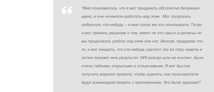 Другой клиент, на вопрос о том, как проходил его рабочий процесс с нами, ответил: